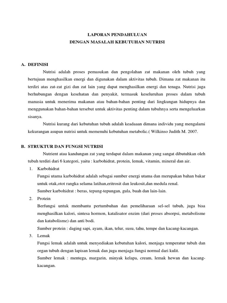 Lp Kebutuhan Nutrisi : Laporan Pendahuluan Kebutuhan Nutrisi Pdf Seputar Laporan : Laporan pendahuluan asuhan keperawatan pasien dengan gangguan kebutuhan dasar nutrisi a.