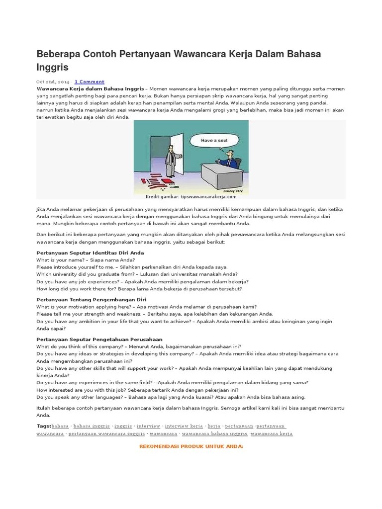 Contoh Interview Pekerjaan Dalam Bahasa Inggris : Contoh Teks Wawancara Tentang Bisnis Dalam Bahasa Inggris - Engineer atau insinyur adalah posisi yang cukup banyak dicari.. Yang menjadi pertanyaan wawancara kerja dalam bahasa inggris selanjutnya. Dalam beberapa perusahaan, mereka mensyaratkan menggunakan bahasa inggris dalam proses seleksinya, dan biasanya puncaknya pada sesi wawancara kerja. Pertanyaan wawancara kerja dalam bahasa inggris . After that you will be a full employee . Jika anda salah satu job seeker yang tengah mempelajari bagaimana interview kerja bahasa inggris, jangan ragu untuk melanjutkan pembahasan artikel ini yang akan .